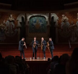 De leden van Kebyart, zijn Pere Méndez, sopraansaxofoon, Víctor Serra, altsaxofoon, Robert Seara, tenorsaxofoon en Daniel Miguel, baritonsaxofoon. Deze vier talentvolle musici delen niet alleen een passie voor kamermuziek, maar ook de wens om een frisse wind door de klassieke muziek te laten waaien. Hier komen deze vier muzikale vrijdenkers uit Barcelona samen om compleet nieuwe pagina’s met sonische instrumenten te openen. Elk van hun optredens belooft boeiend te worden en hun naam zegt het al: het Balinese woord kebyar betekent zoiets als ‘plotseling opstaan’ of ‘uitbarsten’ – een geschikte metafoor voor de energieke en uiterst virtuoze muziek van de vier Spanjaarden.
